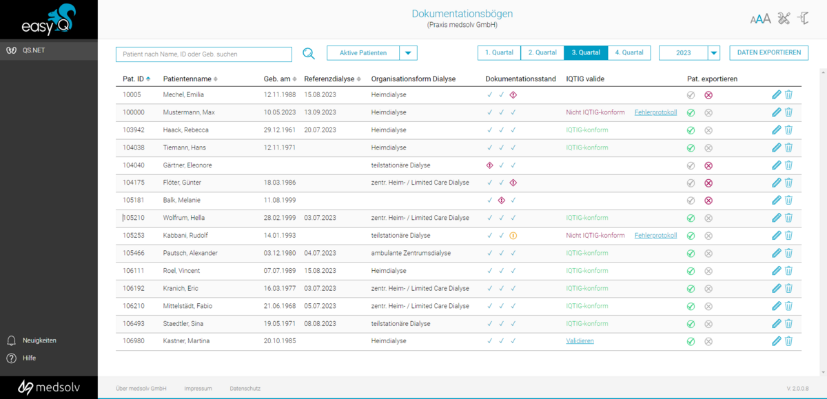 Validation during data acquisition + integrated result verification with the test programs of the IQTIG Institute